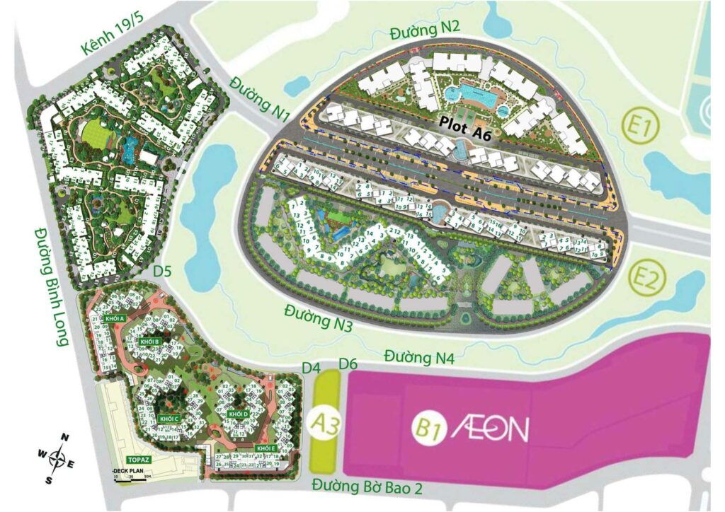 Celadon City is in the top of the largest urban areas in Ho Chi Minh City, located at Bo Bao Tan Thang Street, Son Ky Ward, Tan Phu District. Developed by Gamuda Land (Malaysia), this project spans over 82 hectares and boasts a 5-star complex of amenities and designs.